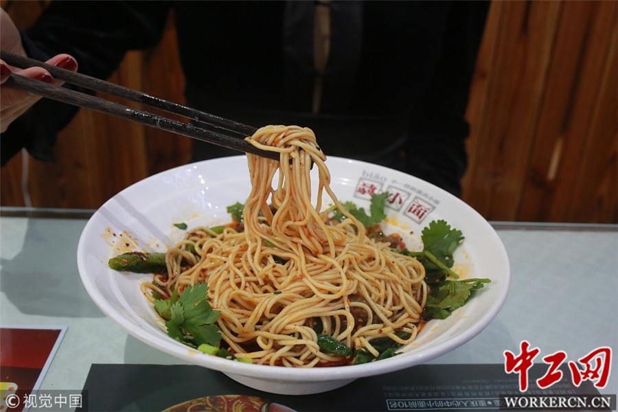 90后时尚美女重庆开面馆 小面的颜值和口味一样重要
