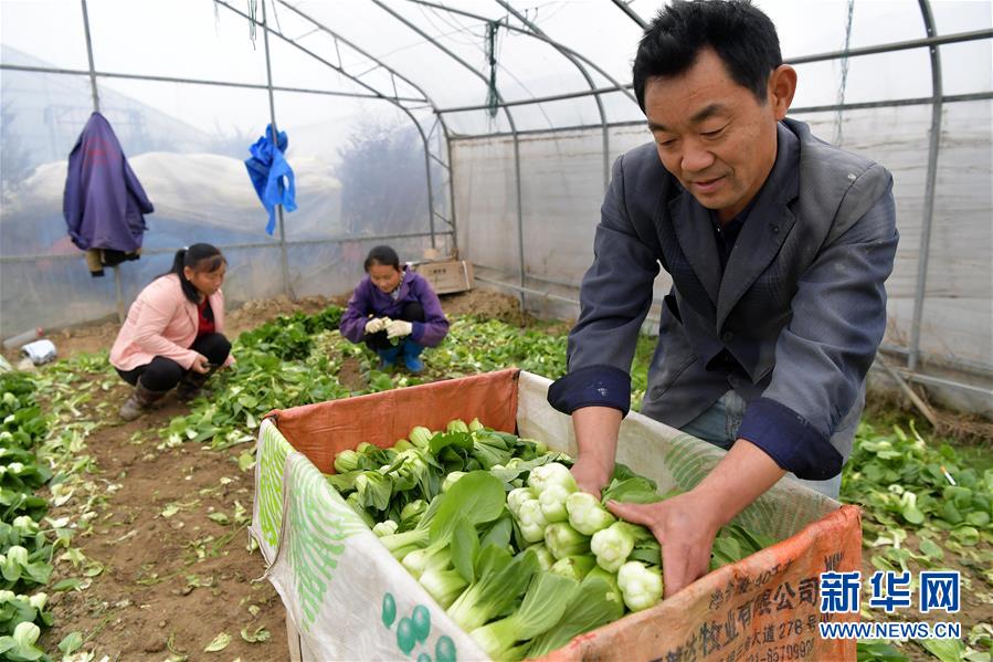 在江西省南昌市南昌县银三角管委会现代农业综合示范基地内,当地农户在设施温棚内采摘即将上市的小青菜(11月7日摄)。新华社记者 彭昭之 摄