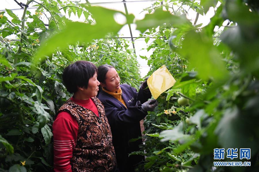 11月9日,位于乐亭县的唐山绿昕农业发展有限公司技术人员在大棚内指导菜农病虫害绿色防控技术。