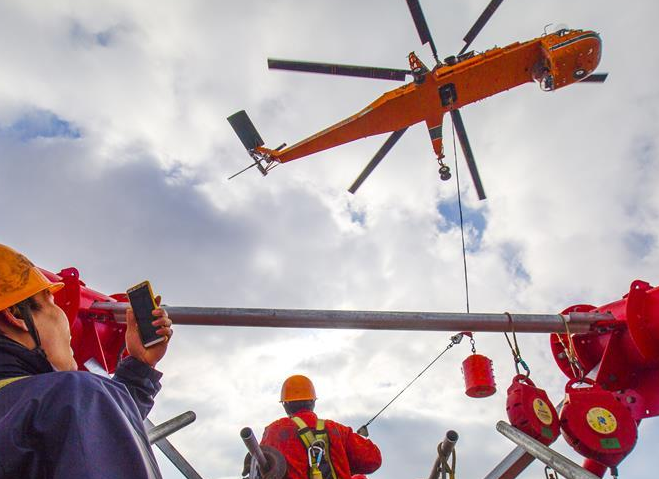 世界最高输电铁塔直升机跨海放索顺利完成