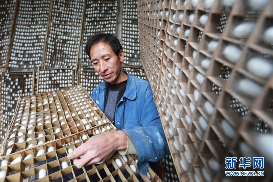 11月12日,在贵州省毕节市双山镇普陆村,杨天勇在摘蚕茧。 新华社发(王纯亮 摄)