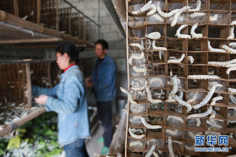 11月12日,在贵州省毕节市双山镇普陆村,杨天勇和妻子罗艳在管护“蚕宝宝”。 新华社发(王纯亮 摄)
