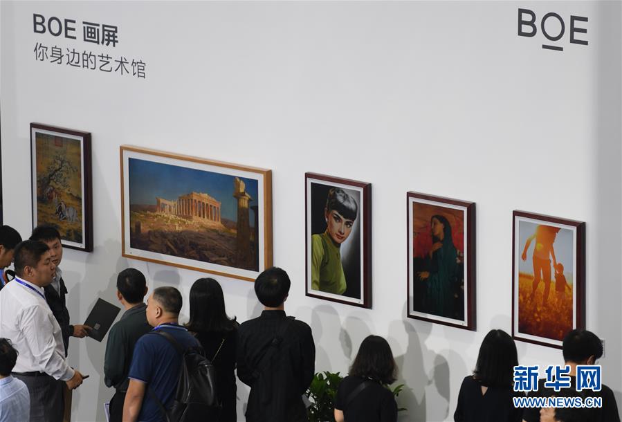 11月14日,观众在高交会上参观京东方展示的画屏。 新华社记者 毛思倩 摄