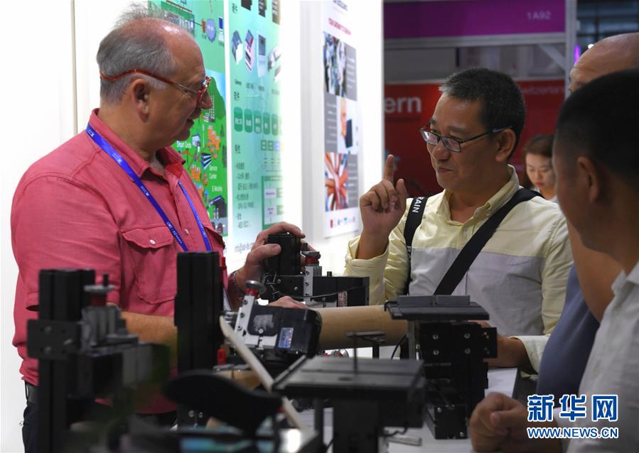 11月14日,客商在高交会一带一路馆交流。 新华社记者 毛思倩 摄