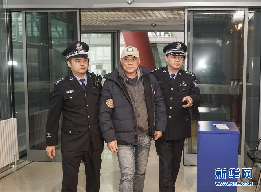 11月14日,在北京首都机场,红通逃犯郑泉官被从美国强制遣返。 新华社记者 殷刚 摄