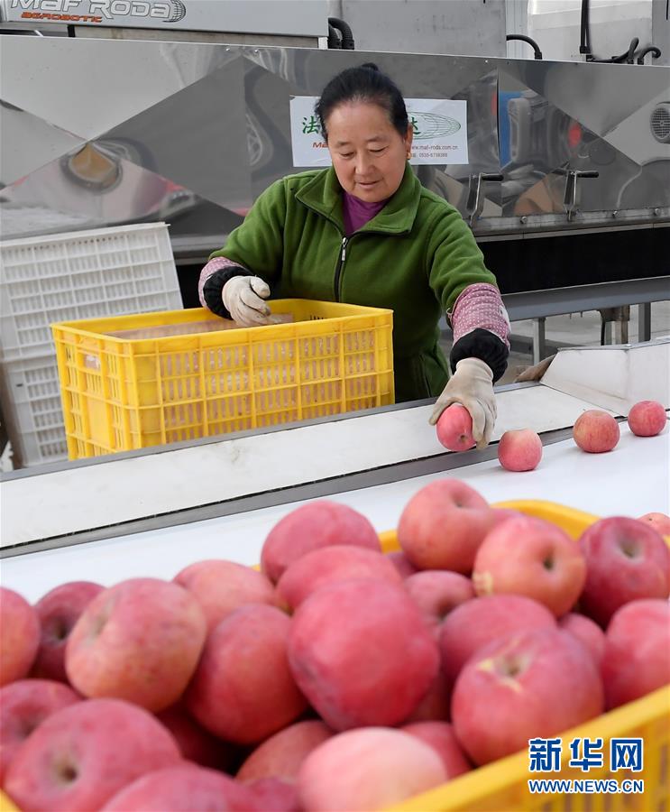 陕西省延安市宝塔区地处黄土高原丘陵沟壑地带,是苹果优生区。近年来,宝塔区推进以苹果分选、冷藏、营销、休闲观光等为主的苹果“后整理”工作,按照“政府+企业(合作社)+电商+物流+贫困户”的全产业链模式,全面提升苹果产业效益,助推产业扶贫。目前,全区已建成5条智能苹果分选线,区内贫困户可免费上线选果,进行分级销售。