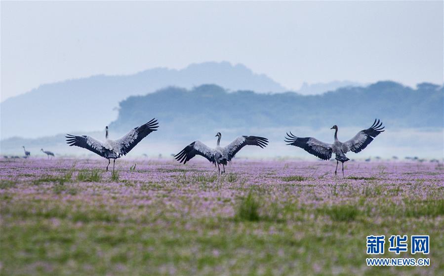 这是11月14日在江西鄱阳湖都昌湿地拍摄的灰鹤。 新华社发(傅建斌 摄)