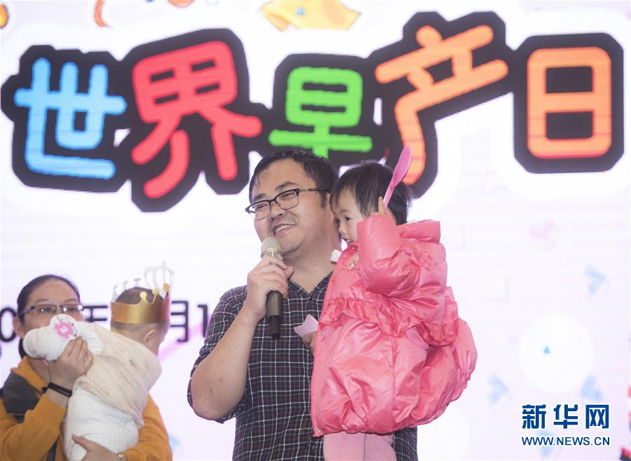 11月16日,一位父亲带着孩子在派对现场分享照顾孩子成长的感受。 当日,武汉儿童医院为早产儿家庭举办了一个派对。18名在武汉儿童医院出生的早产宝宝,和家人一起重回武汉儿童医院,与医护人员相聚。 新华社记者 肖艺九 摄