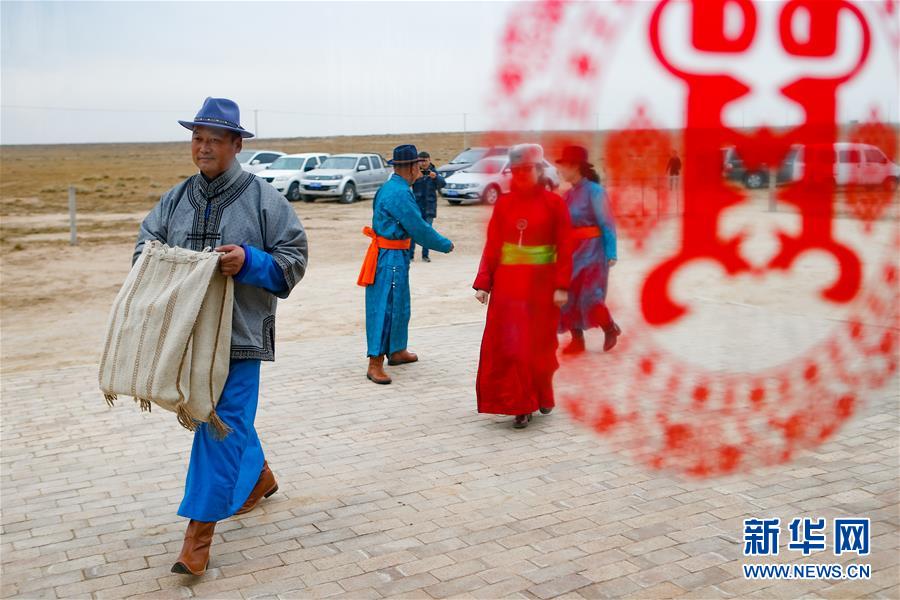 11月16日,在内蒙古鄂尔多斯市鄂托克前旗乌提嘎查,男方亲属带着礼品前来参加婚礼,新郎父母在门外迎接。新华社记者 虞东升 摄