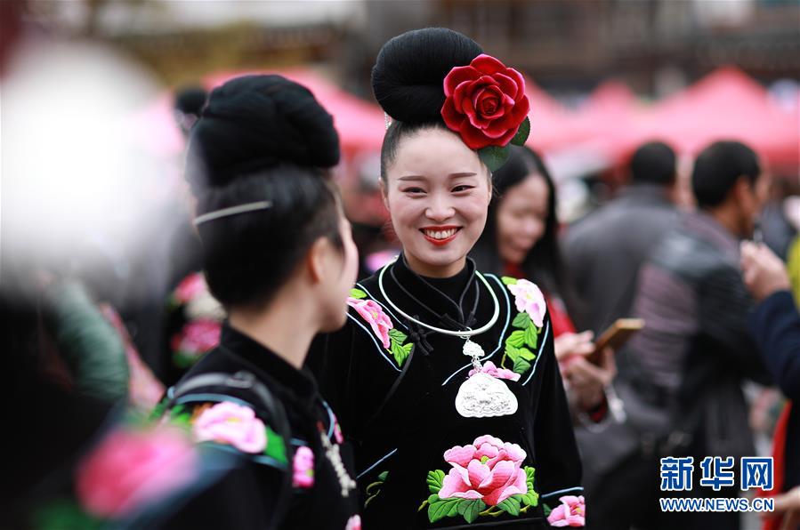 11月18日,在贵州省雷山县,苗族同胞盛装打扮过苗年。