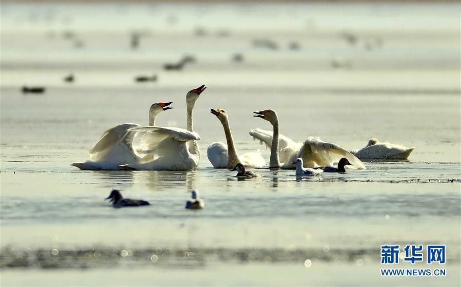 近日,大批天鹅等候鸟飞抵河北省张家口市察北管理区罗平湖栖息,为初冬时节的坝上地区增添了一道靓丽风景。