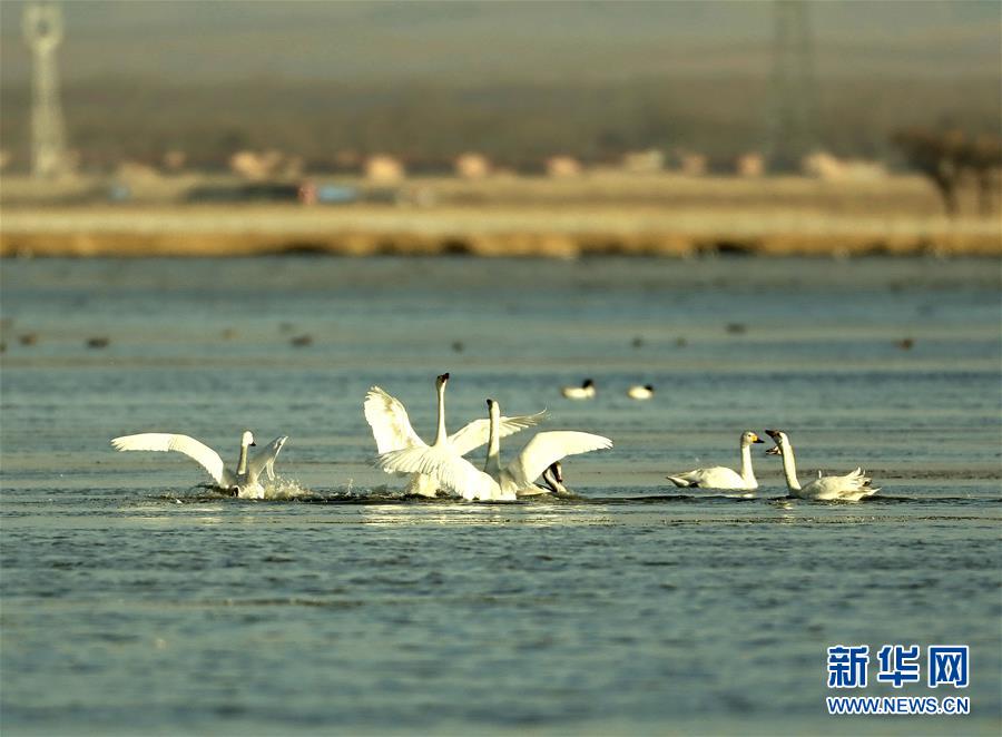 近日,大批天鹅等候鸟飞抵河北省张家口市察北管理区罗平湖栖息,为初冬时节的坝上地区增添了一道靓丽风景。