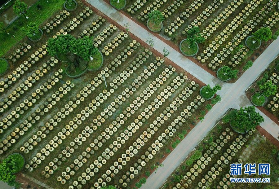 这是11月18日在贵州省赤水市一家醋厂晾晒场拍摄的醋坛(无人机拍摄)。 “赤水晒醋”历史悠久,这种古法酿醋技艺以当地优质大米、糯米、纯中药制作醋曲,经过蒸煮、酿晒、发酵等30余道工序制作而成,2009年被列入贵州省级非遗名录。 新华社发(王长育 摄)