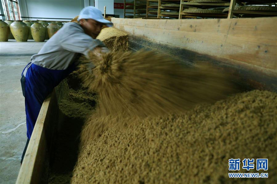 11月18日,在贵州省赤水市一家醋厂,工人在手工翻动醋坯。 “赤水晒醋”历史悠久,这种古法酿醋技艺以当地优质大米、糯米、纯中药制作醋曲,经过蒸煮、酿晒、发酵等30余道工序制作而成,2009年被列入贵州省级非遗名录。 新华社发(王长育 摄)