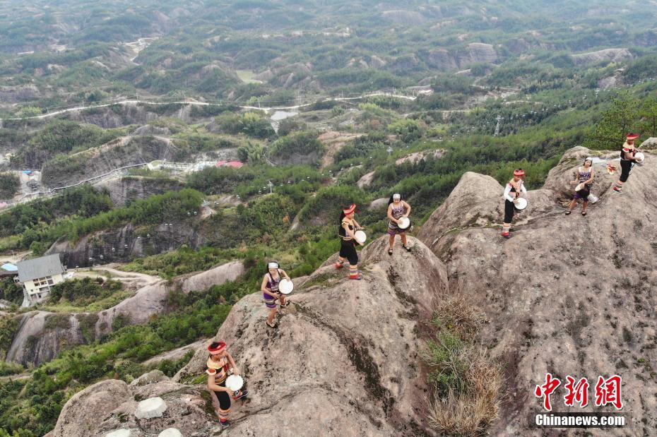 湖南平江悬崖之巅上演高空手鼓乐演奏