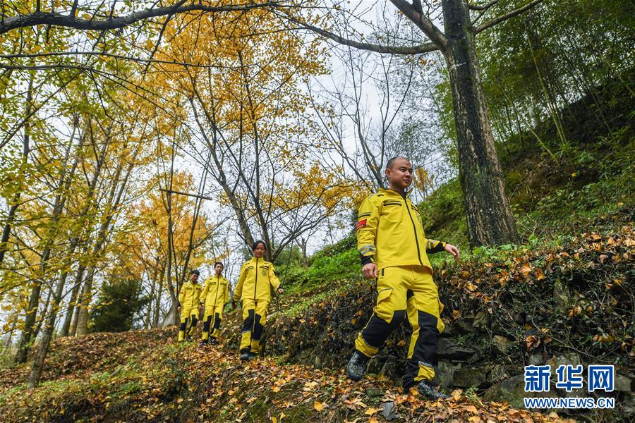 11月19日,清凉峰镇的党员公益救援队队员利用空余轮班时间,在附近的山道上进行日常巡逻。