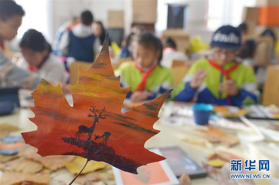 近日,山东省青岛市实验小学的孩子们搜集各种落叶,通过白描、彩绘、镂刻等方式,对树叶进行创意绘画,留住多彩秋天。