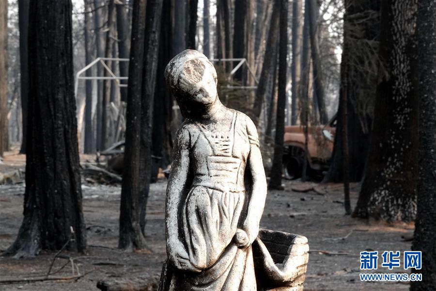 这是11月19日在美国加利福尼亚州比尤特县天堂镇拍摄的山火废墟。新华社记者吴晓凌摄
