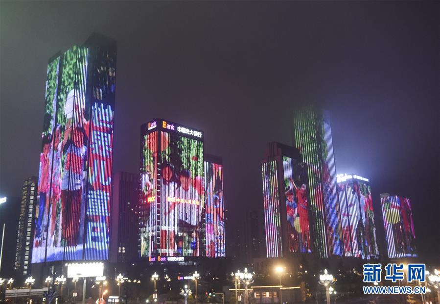 11月20日,贵阳市举办世界儿童日主题活动,观山湖区金融城的大楼被点亮。 新华社记者 陶亮 摄