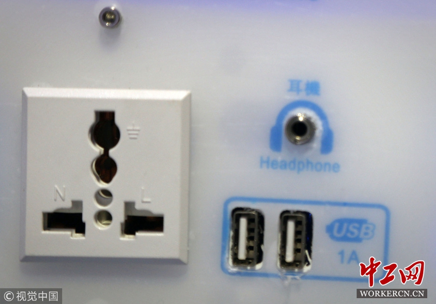 2018年11月16日,河南洛阳。不仅有充电插座和USB接口,还有专门听音乐的耳机插口。图片来源:视觉中国