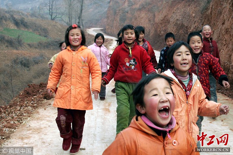 2006年12月27日,河南三门峡,豫西卢氏山区文峪乡吴家沟村修通了水泥路,孩子们上学时走在宽敞的大路上别提多兴奋了。