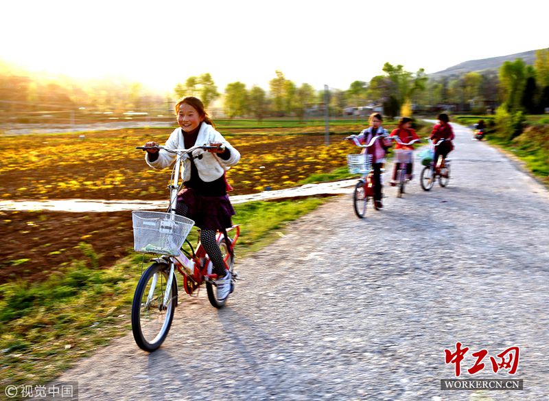 2012年4月13日,河南三门峡,卢氏县横涧乡薛家沟村,随着农村交通条件和群众生活的不断改善,许多大一点孩子已经骑着自行车上学了。(图片来源:视觉中国 请勿转载)