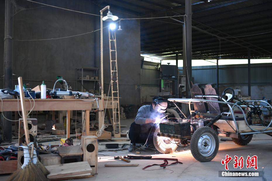因丈夫有木工手艺,他们在这里成为了木匠,把做好的商品放到网上售卖补贴家用。中新社记者 任东 摄
