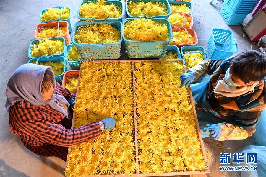11月21日,河北省滦南县胡各庄镇东庄店村农民在分拣菊花以备烘干。 近年来,河北省滦南县胡各庄镇根据本地土壤、气候特点,采取“公司+合作社+农户”的方式,招引农业龙头企业发展特色菊花种植产业,并依托企业将菊花制成高附加值产品,带动100余户农民实现增收致富。 新华社记者 牟宇 摄