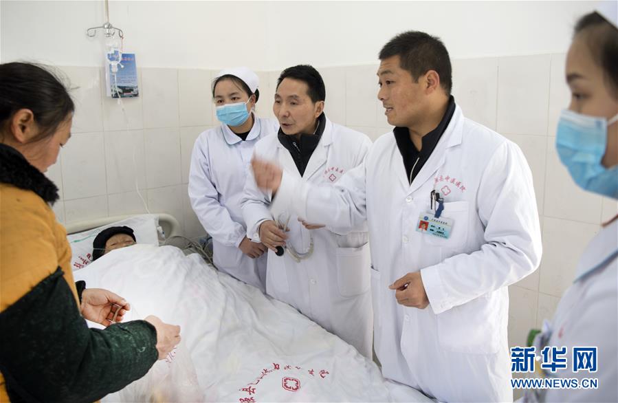 11月21日,董飞(右二)与宁强县中医医院副院长高静安(右三)一起会诊病人病情。 新华社记者陶明摄