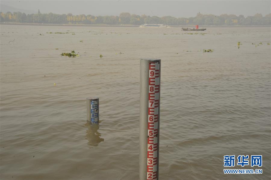 这是长沙水文站在湘江边设置的水位标杆(11月22日摄)。 新华社记者 龙弘涛 摄
