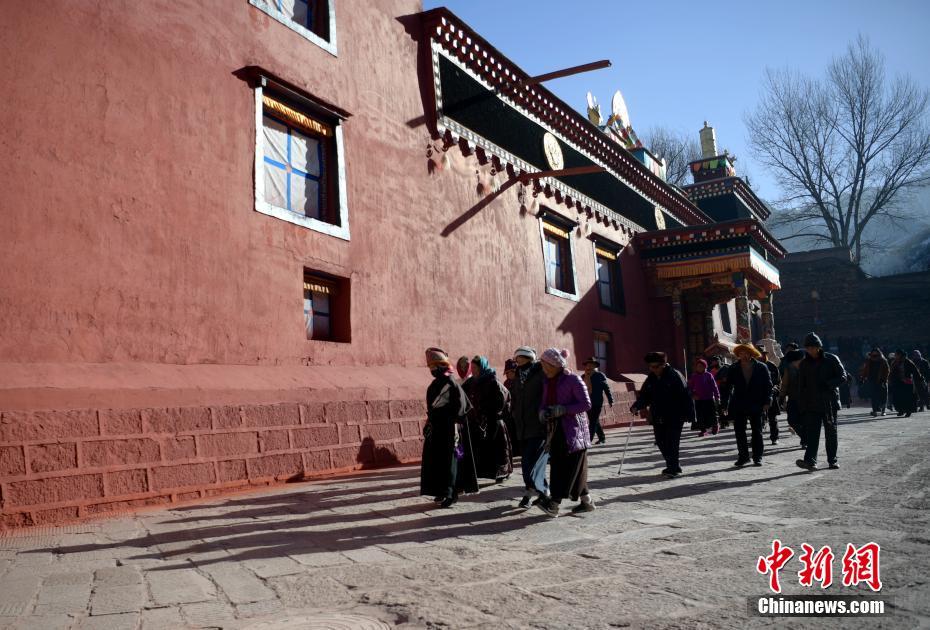 印经院外转经的藏族民众。中新社记者 刘忠俊 摄