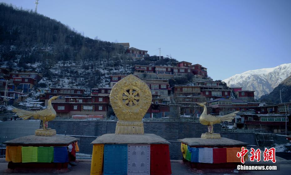 印经院房顶一对金孔雀塑像。中新社记者 刘忠俊 摄