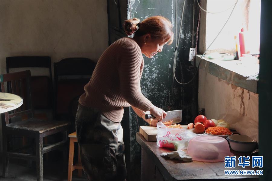 在新疆哈密市七角井镇七角井村的老村,罗玉兄在准备午饭(11月2日摄)。 新华社记者孙哲摄