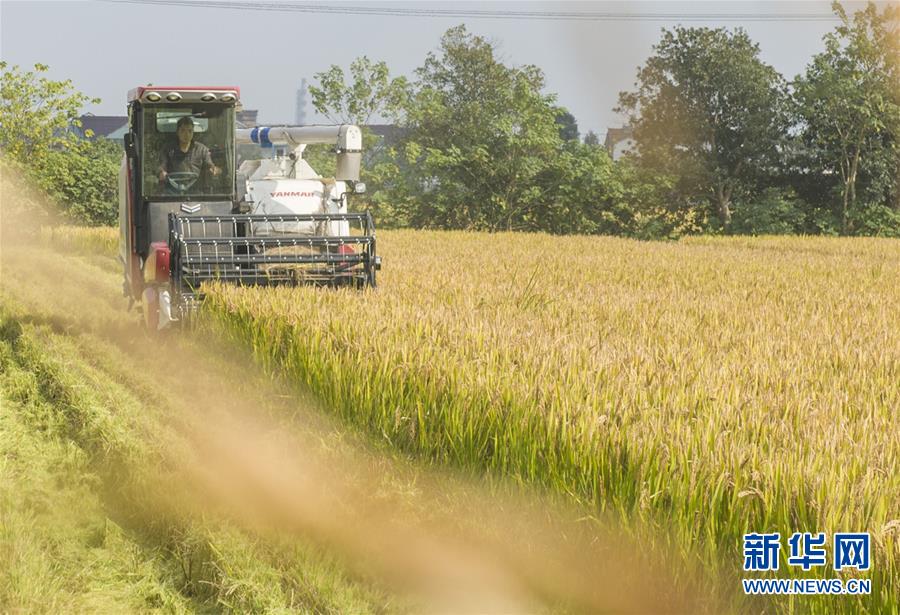 11月22日,农户在浙江省余姚市黄家埠镇田间收割晚稻。 当日是二十四节气中的小雪,各地农民做好采收、御寒、管理等工作,确保冬季农业生产顺利进行。 新华社发(张辉 摄)