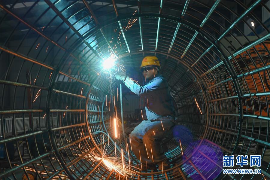 11月22日,工人在新建福厦铁路8标段加工钢筋笼。 新华社记者 宋为伟 摄