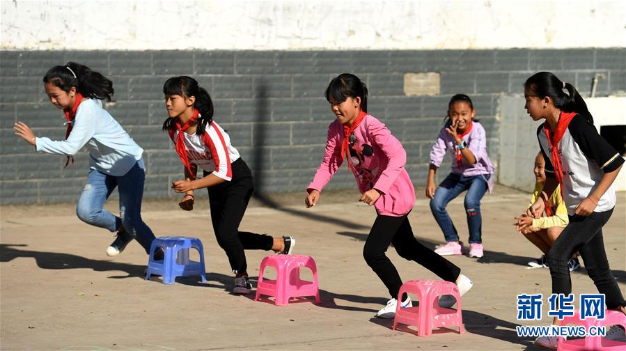 云南西双版纳基诺山基诺族乡民族小学学生在进行趣味比赛(11月20日摄)。