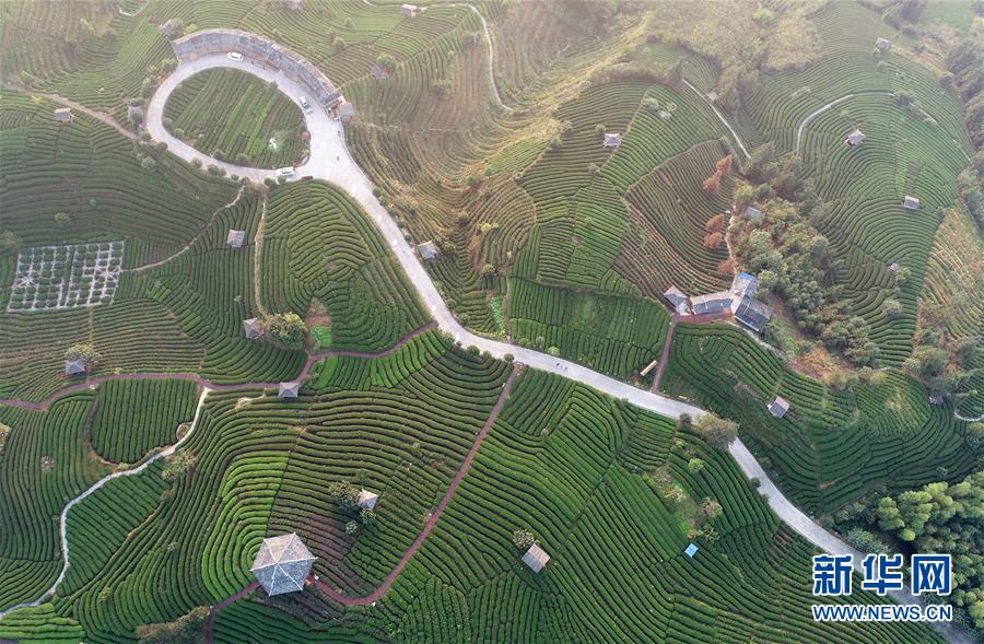 11月23日拍摄的广西柳州三江侗族自治县八江镇布央村茶园(无人机拍摄)。