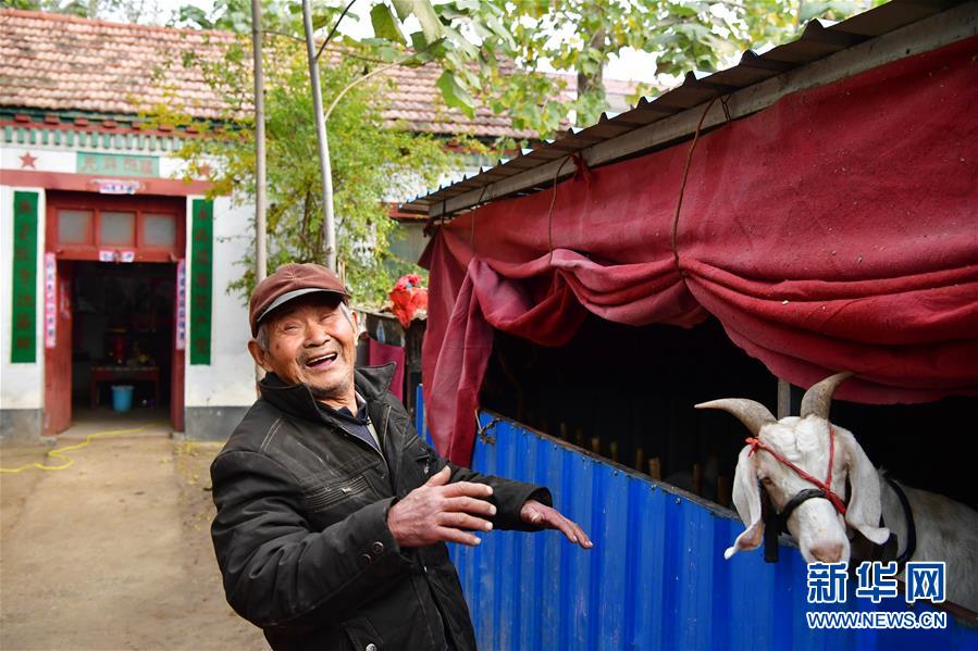 在河南兰考县葡萄架乡黄砦村,村民潘秀山站在自家羊圈旁(11月10日摄)。新华社记者 冯大鹏 摄