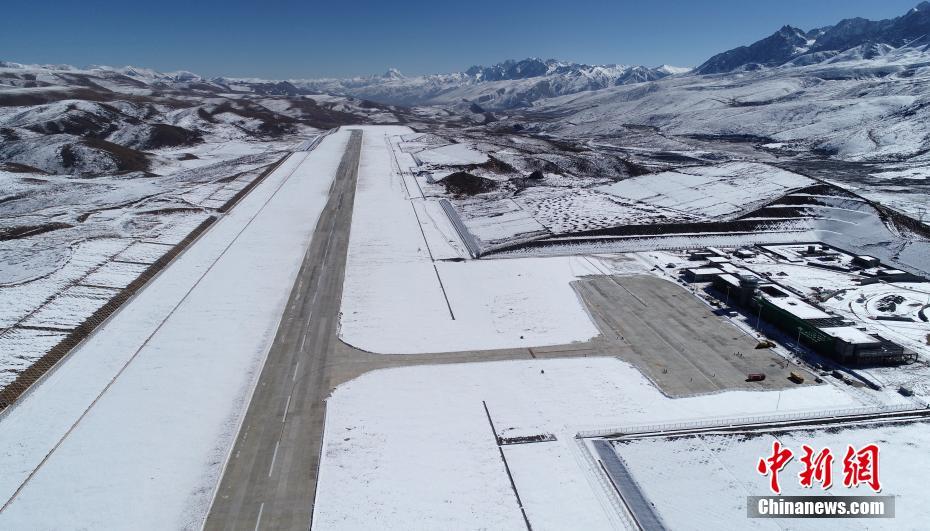 11月23日,四川甘孜县,格萨尔机场跑道、停机坪等标示线等已完工。四川甘孜州格萨尔机场海拔4068米,4000米长机场跑道及停机坪标志、标线等已完成,已基本具备校飞条件。航站楼、道路等建设正在加紧进行。中新社记者 刘忠俊 摄