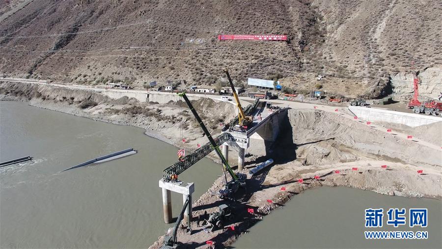 当日12时40分,经武警某部交通三支队官兵连续奋战,被金沙江白格堰塞湖泄洪冲毁的金沙江大桥成功吊装起第一跨,这标志着318国道抢通取得突破性进展。