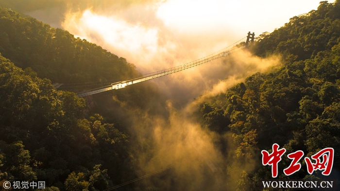2018年11月29日,一只山猪误入广东清远古龙峡云天玻霸玻璃桥,结果被吓得趴在桥面上发抖,几名值班保安齐心协力将山猪从玻璃桥上解救出来,将其送回森林。