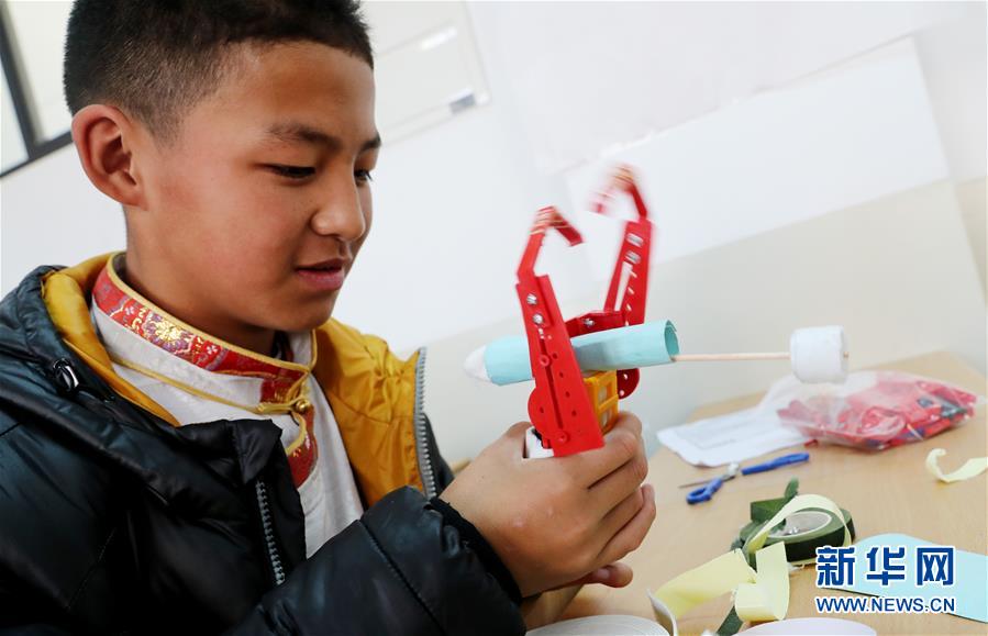 12月1日,来自西藏亚东县中学的格桑罗布在机器人竞技比赛候场区调整自己的机器人。