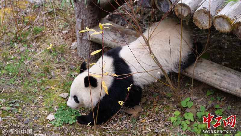 2018年12月4日,四川阿坝,大熊猫福伴在保护研究中户外活动场。(图片来源:视觉中国)