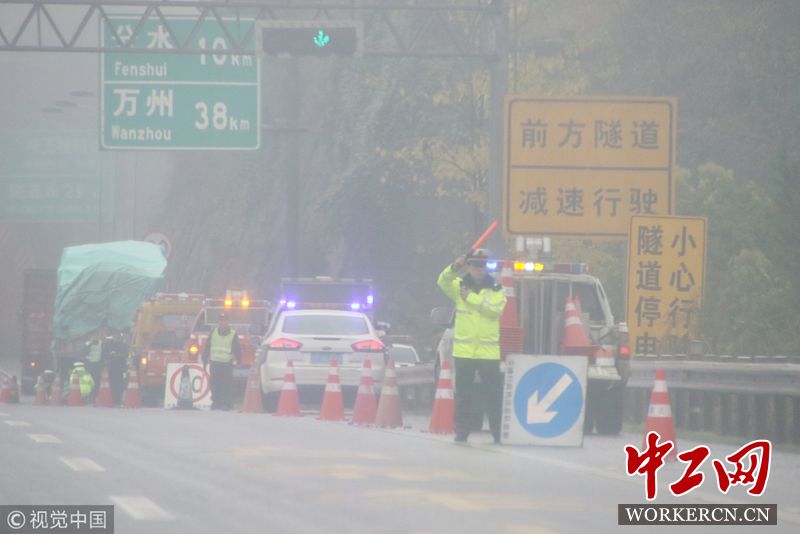 2018年12月3日,重庆,高速交警在雾中疏导交通。(图片来源:视觉中国)