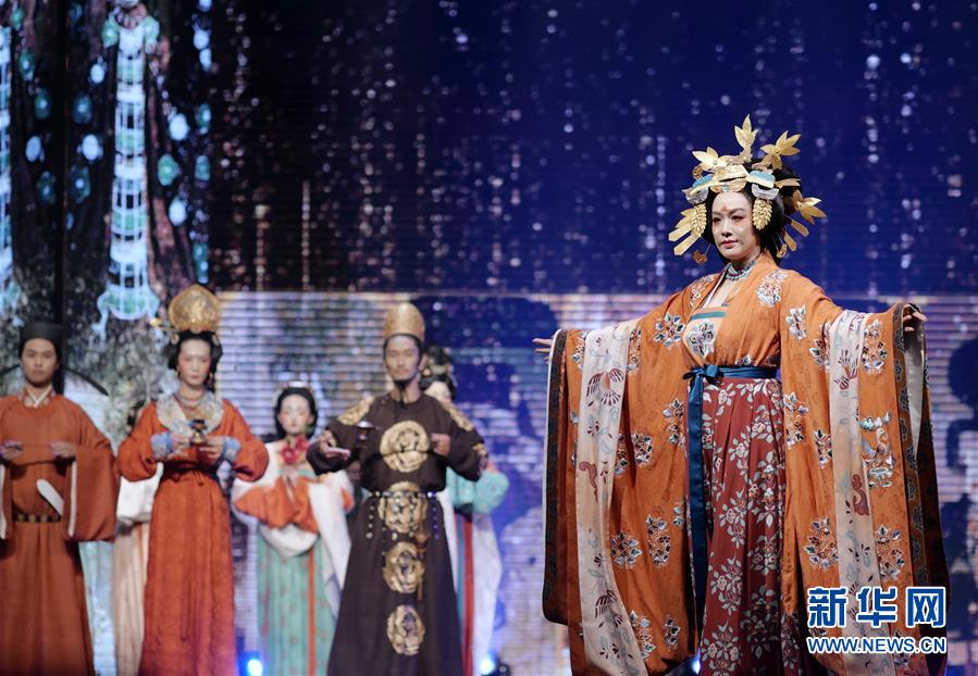12月4日,在香港亚洲国际博览馆,模特在“绝色敦煌之夜”演出中走秀。 新华社发 (王申 摄)