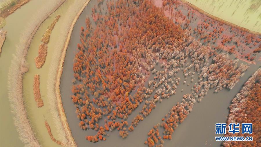 12月5日无人机拍摄的池杉林。 新华社记者 曹力 摄