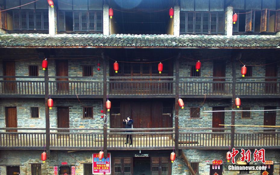 俯瞰江西龙南清代古建燕翼围 四层楼高层层环通
