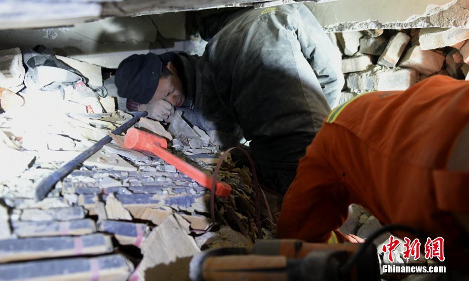 垮塌现场救援人员正在营救一名被埋者。罗光链 摄