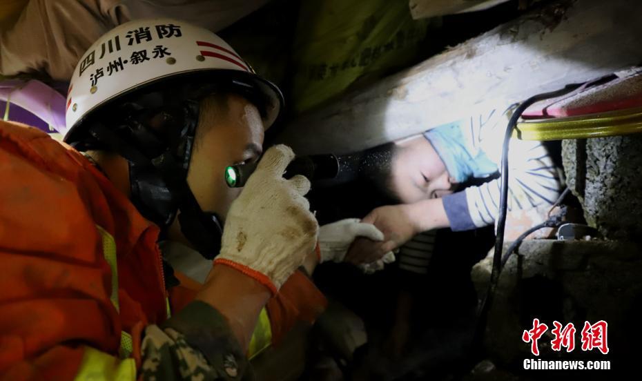 救援人员边安慰被埋者,边观察现场。罗光链 摄