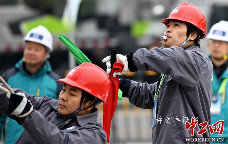 2018年12月13日,“中联重科杯”第五届全国吊装职业技能竞赛在湖南长沙的中联重科麓谷工业园举行。来自全国不同行业的吊装能手共23支代表队92名队员参加了比赛。使用中联重科提供的260吨ZCC2600履带起重机,经过近3天的激烈角逐落下帷幕,最终中国电建山东电建一公司、中石化起运公司、中国电建核电公司代表队分别获得前三名。图为比赛中各队的总指挥。工人日报-中工网记者许之丰湖南长沙摄影报道